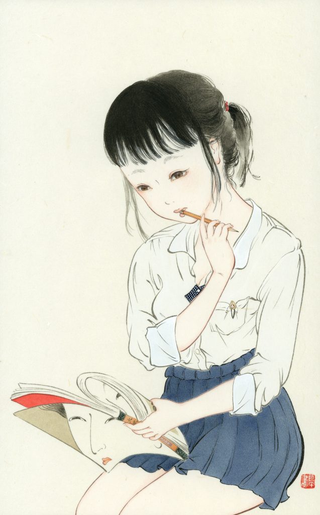 「フェルールを噛む女」202517.3cm×27.8cm和紙に墨、アクリル、金泥
